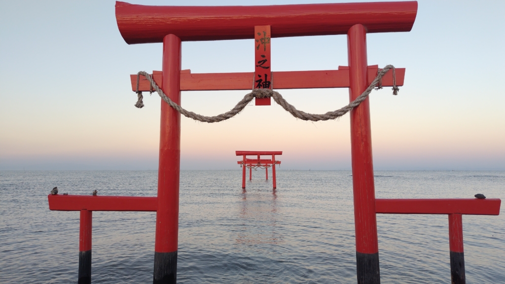 宿から車で15分くらいのところにある海中鳥居(大魚神社)に立ち寄りました。