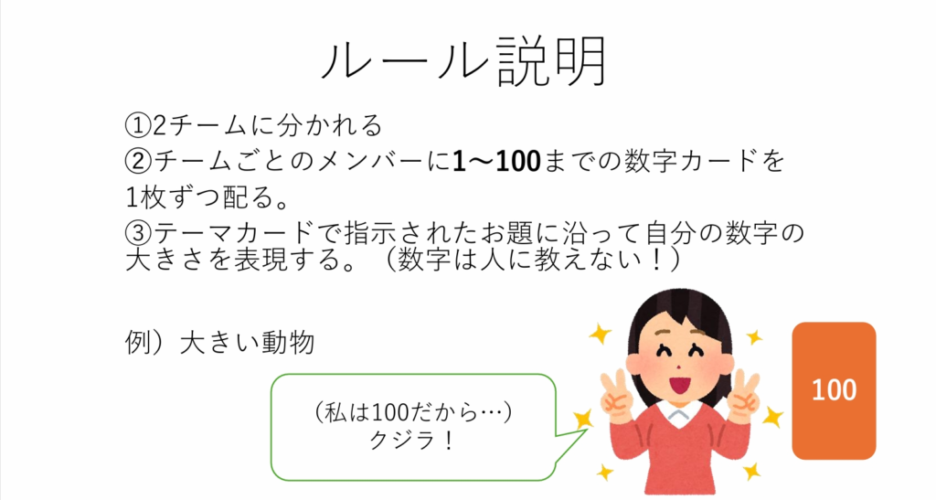 このゲームは相手の価値観を見極めることと、皆に自分の数字を察してもらう伝達力が肝心です。普段から一緒に働いている皆さん、こういったゲームは大得意の筈。果たして各チームは上手く価値観の擦り合わせが出来るのでしょうか…?